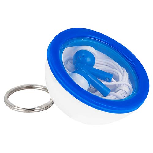 Audifonos con base para smartphone y argolla para llavero.
