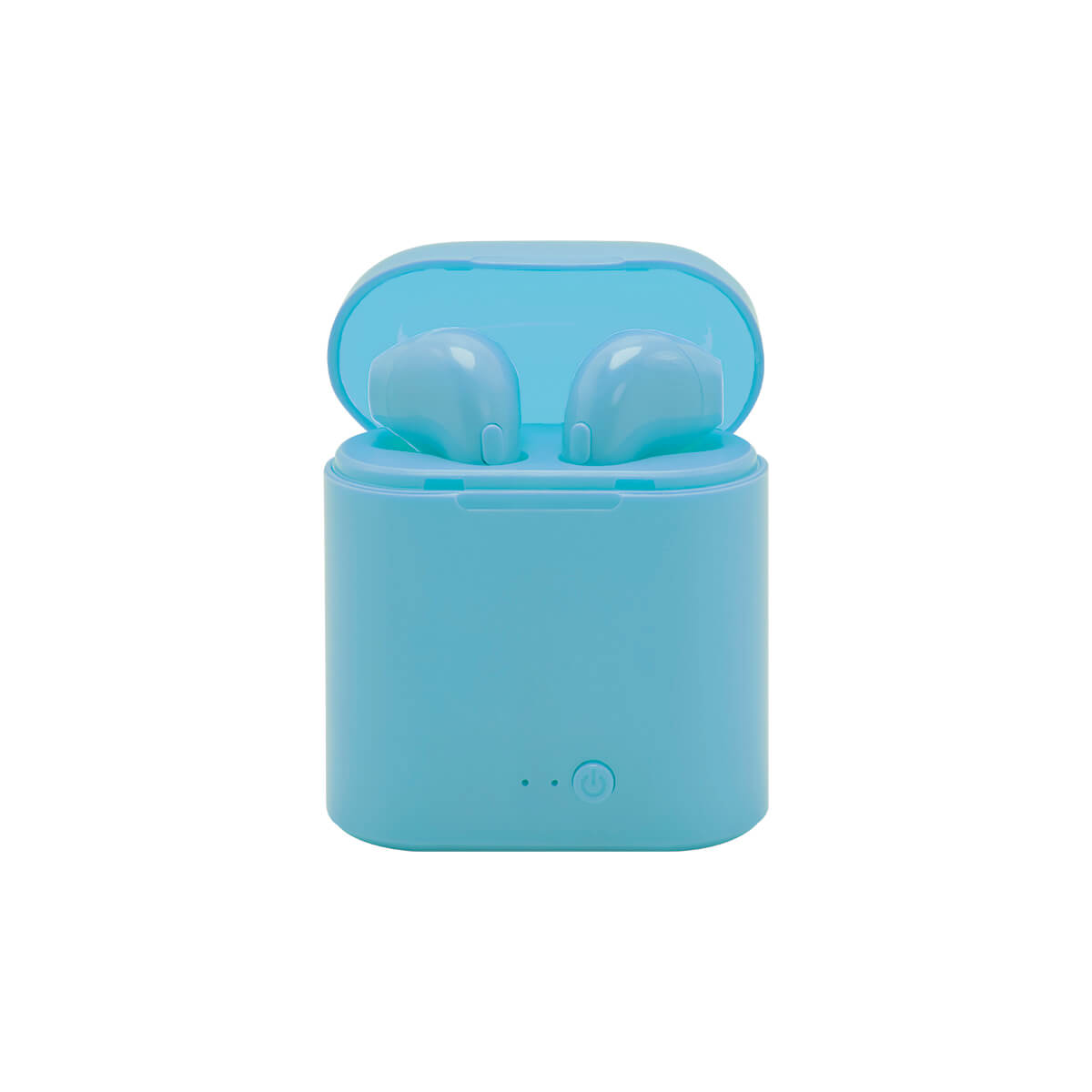 Audifonos bluetooth inalambricos con bateria recargable. Funcion manos libres. Reproduccion de musica 2 hrs aproximadamente. Incluye estuche para recargar los audifonos y cable cargador USB.
