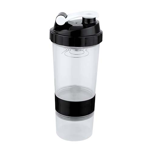 Cuenta con dos compartimentos especiales en la parte inferior y divisor de pastillas. Tapa con cierre de rosca, reductor y sobre tapa de presion. Incluye agitador y caja individual.
