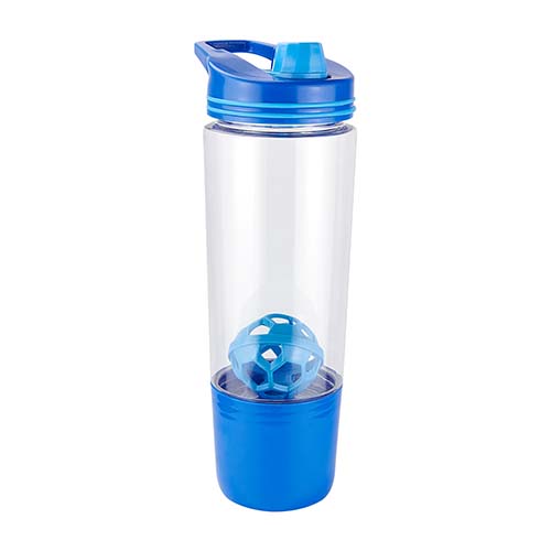 Tapa de rosca con boquilla y asa. Cuenta con compartimento especial en la parte inferior. Incluye separador, agitador y caja individual.