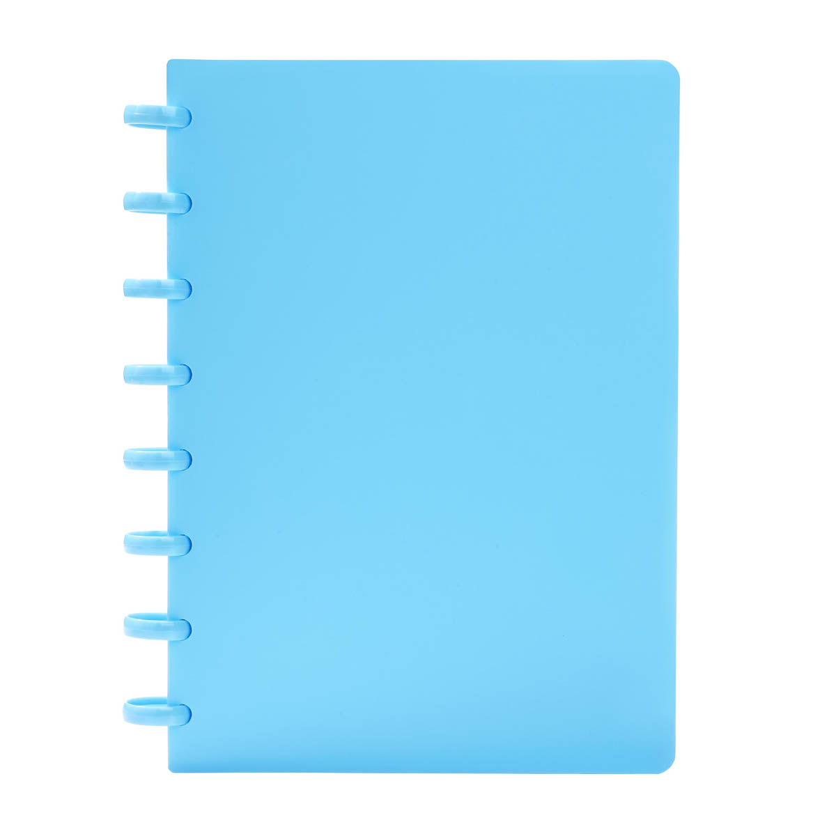 Libreta con 80 hojas a rayas. Cubierta de plastico. Incluye 8 aros de plastico que funcionan como espiral y permite la incorporacion de hojas removibles, lo que facilita la reorganizacion de tus apuntes cuantas veces lo desees. Ideal para notas, bocetos o planificacion, esta libreta combina funcionalidad y un diseno innovador.