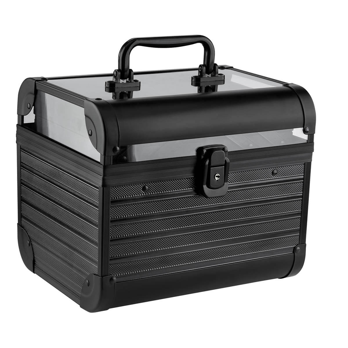 Neceser maletin multifuncional reforzado. Organiza todos tus productos de belleza de manera eficiente. Gracias a su diseno expandible, incluye 4 charolas; una especial para joyeria. Cierre con broche metalico, incorpora una cerradura con llave para mantener el acceso controlado. Asa superior para utilizarla en casa o para viajar.