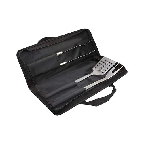 Maletin con cierre y asa. Incluye pinzas, tenedor y espatula.